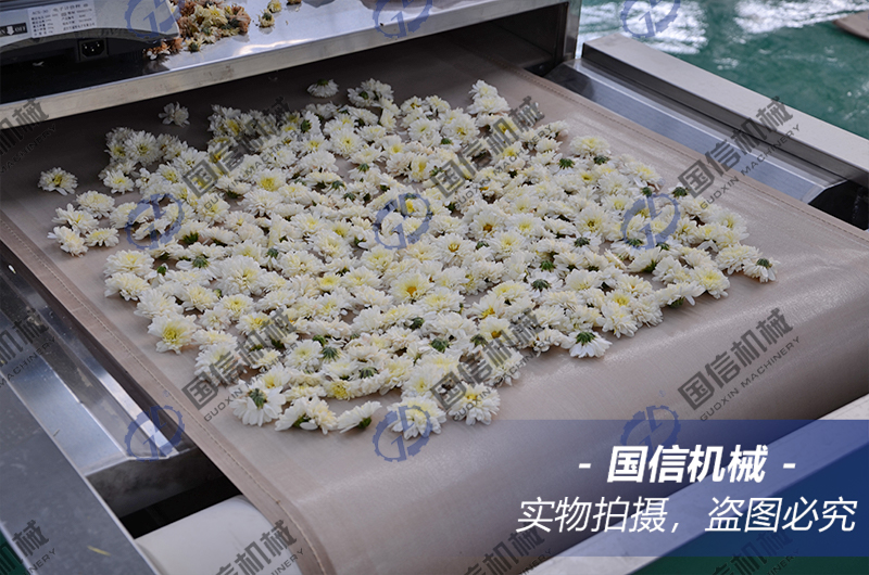 顧名思義,這款設(shè)備采用的就是微波來進(jìn)行烘干和殺青,設(shè)備集殺青、殺菌、烘干于一體,一機(jī)多用,工作原理是以微波的高頻震蕩作用,使菊花從內(nèi)而外的干燥,殺青效果好,營養(yǎng)物質(zhì)保留完整,烘干后的菊花色澤鮮艷,不變色,賣相好。