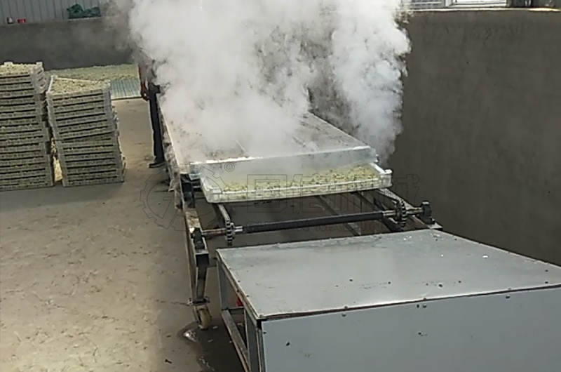 菊花烘干前,要先進行機械殺青。機械殺青包括蒸汽殺青和微波殺青兩種方式。