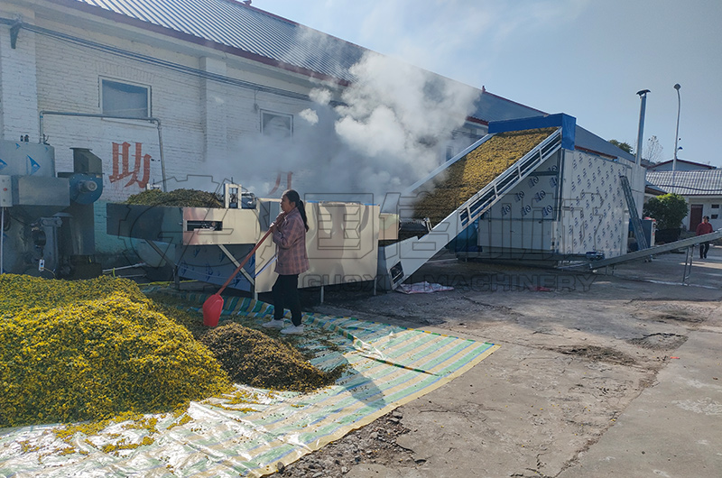 網帶式菊花烘干機是一種大型連續式烘干設備,所以又叫連續式菊花烘干設備,也可叫全自動菊花烘干機。是一種用于菊花等中藥材烘干加工的大型連續式烘干設備。采用多層食品級不銹鋼網帶結構,使菊花在烘干箱體內翻轉輸送,引風機將熱源提供的熱量以熱風的形式輸送至烘干箱體,對菊花進行逐層烘干。