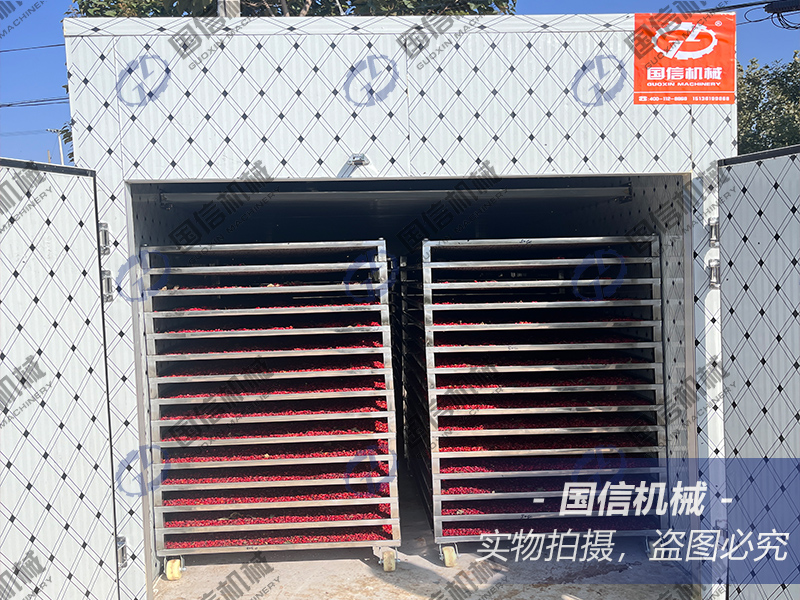 第一階段:?jiǎn)?dòng)山茱萸烘干機(jī),設(shè)置溫度在40℃左右,熱風(fēng)下烘干2小時(shí);